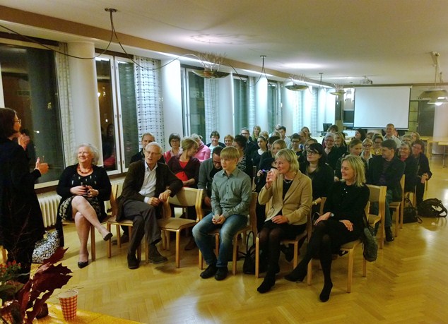 Tilaisuutemme osallistui lähes 60 yhdistyksemme ystävää. Eturivissä Britt-Marie Perheentupa (vas.), Veikko Aalberg, Benjamin, Marja-Liisa Autio ja Pirjo-Riitta Antvuori.