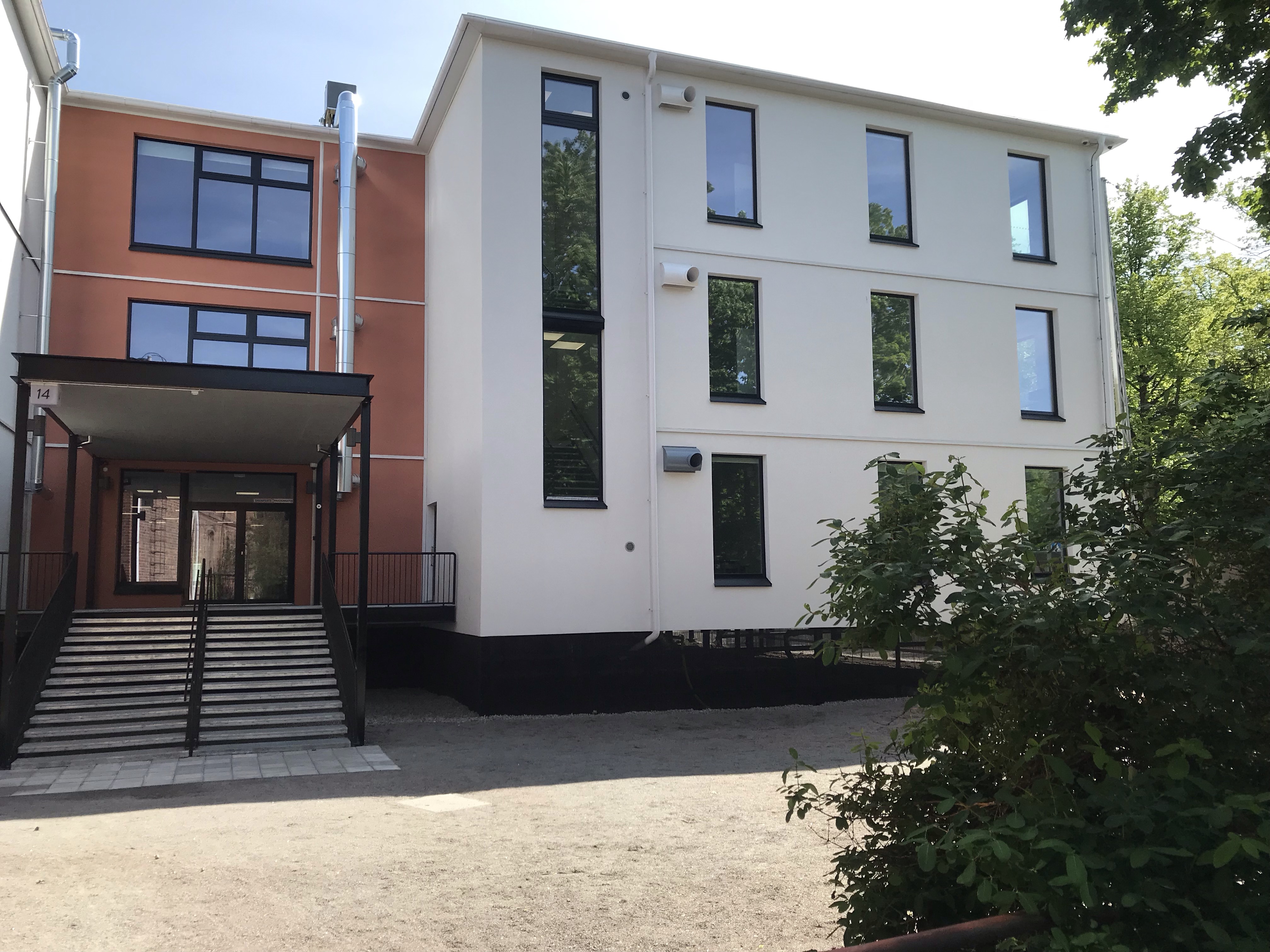 Koulurakennus näyttää upealta myös ulkopuolelta.